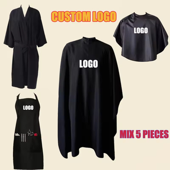 Logotipo personalizado Descartável Cor do cabelo Preto Barber Salon Hair Cutting Maquiagem Haircut Cabeleireiro Cape Apron Kimono Gown